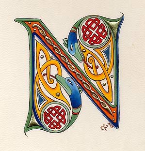 Lettrine "N" celte - chevreau blanc,