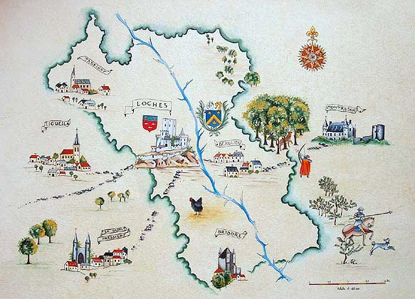 Carte du canton de Loches réalisée pour l'association 'Art et Images" pour la jaquette d'une cassette vidéo.