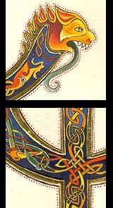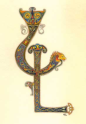 Lettrines "LL" celtes sur peau de veau.