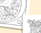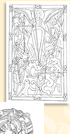 Des fascicules de motifs en noir et blanc, faciles à décalquer pour réaliser vos enluminures, sont en vente sur commande. Ces dessins sont tirés de manuscrits, de livres ou créés par mes soins. Ils ont demandés de longues heures de recherches, de travail et de mise en page, c'est pourquoi je vous demande de ne pas les photocopier pour vos amis. Communiquez-leur plutôt mes coordonnées ! |