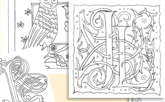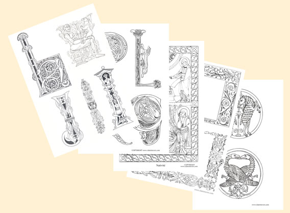 Fascicule 1 : une bonne centaine de lettrines de tous styles à 55 €. Fascicule 2 : une dizaine de modèles de frises ou de motifs ornementaux (formats A5 et A4, frises d'angles, frises fleuries au format marque-page) à 10 €. Fascicule 3 : une trentaine de bestiaires (représentations d'animaux) à 20 €. Fascicule 4 : une compilation de 25 scènes historiées (Création du Monde, Saint Michel ou St Georges terrassant le Dragon, Annonciation, Nativité, scènes d'amour courtois, etc.) et de personnages (Christ, Saint Jean l'Evangéliste, Les Rois Mages, Vierge à l'enfant, etc.) à 25 €. Ajoutez 8 € de frais d'envoi (15 € pour l'Europe). Pour plus de facilité d'emploi, les "fascicules" ne sont pas reliés ; les motifs sont imprimés sur des feuilles blanches (de 1 à 5 motifs par page). Vous pouvez passer commande par courrier en joingnant votre chèque. La marchandise vous sera envoyée en recommandé après encaissement du règlement (soit environ 10 jours de délais). Pour aller plus vite, vous pouvez procéder par virement : pour cela, contactez-moi.
